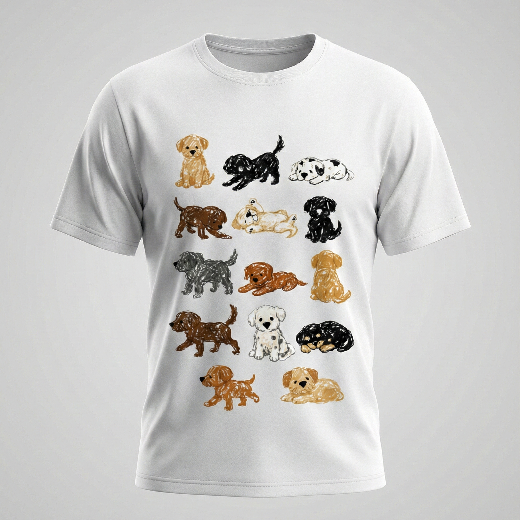 Can't pick a favorite breed? Why choose when you can celebrate them ALL! πΆThis tee features an adorable lineup of the goodest boys and girls - from fluffy Golden Retrievers to tiny Chihuahuas, playful Dalmatians to laid-back Bulldogs. Because whether they're napping, zoomies-ing, or stealing your spot on the couch, every dog breed has its own special kind of chaos (and we love them for it!).